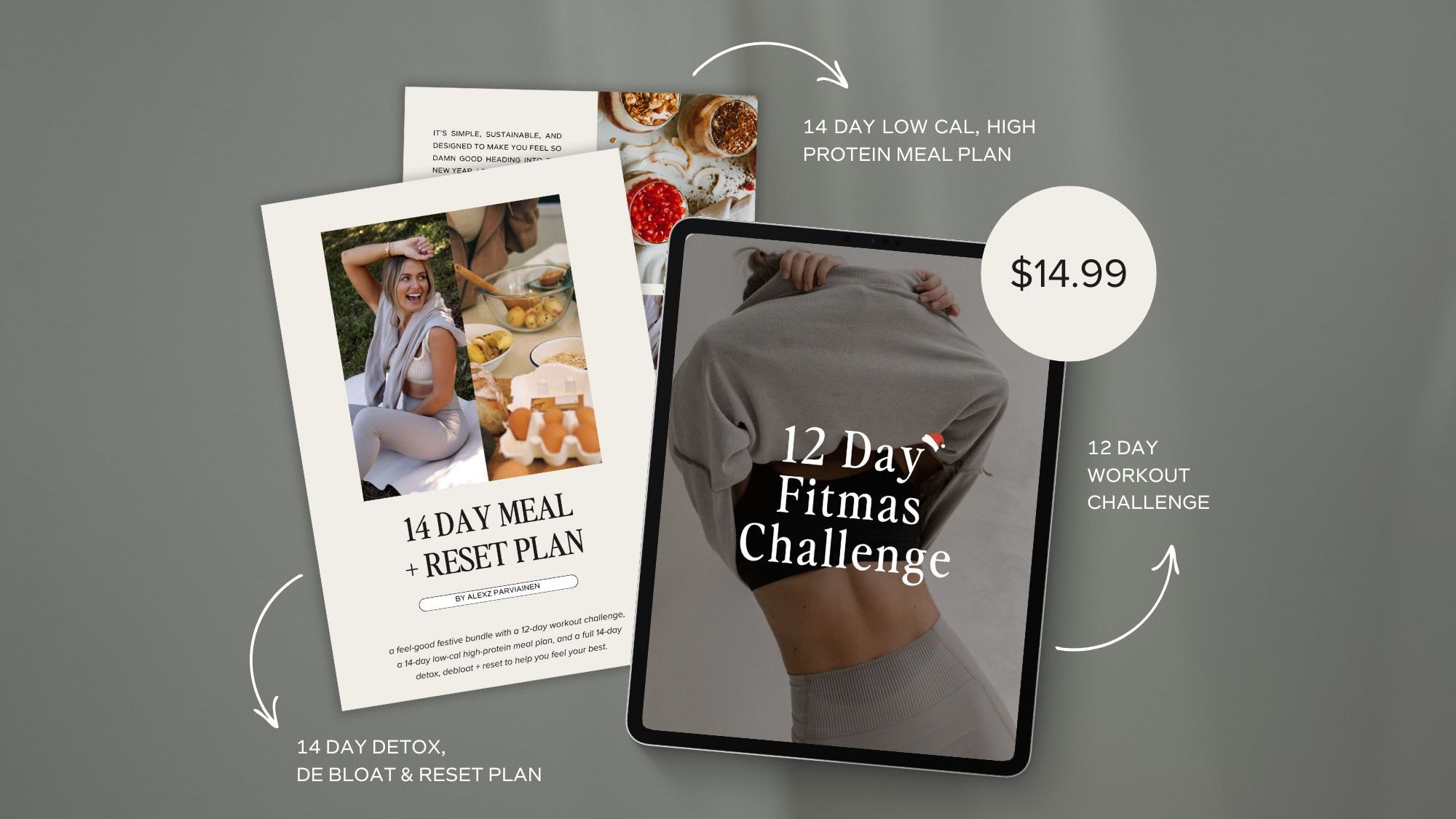 This offer includes full access to the 12 Days of Fitmas Challenge + the complete 12-Day Reset Bundle featuring your meal plan, detox guide and reset framework. Everything has been created to help you move with intention, nourish deeply, debloat, and roll into the new year feeling strong, clear and reset from the inside out.
